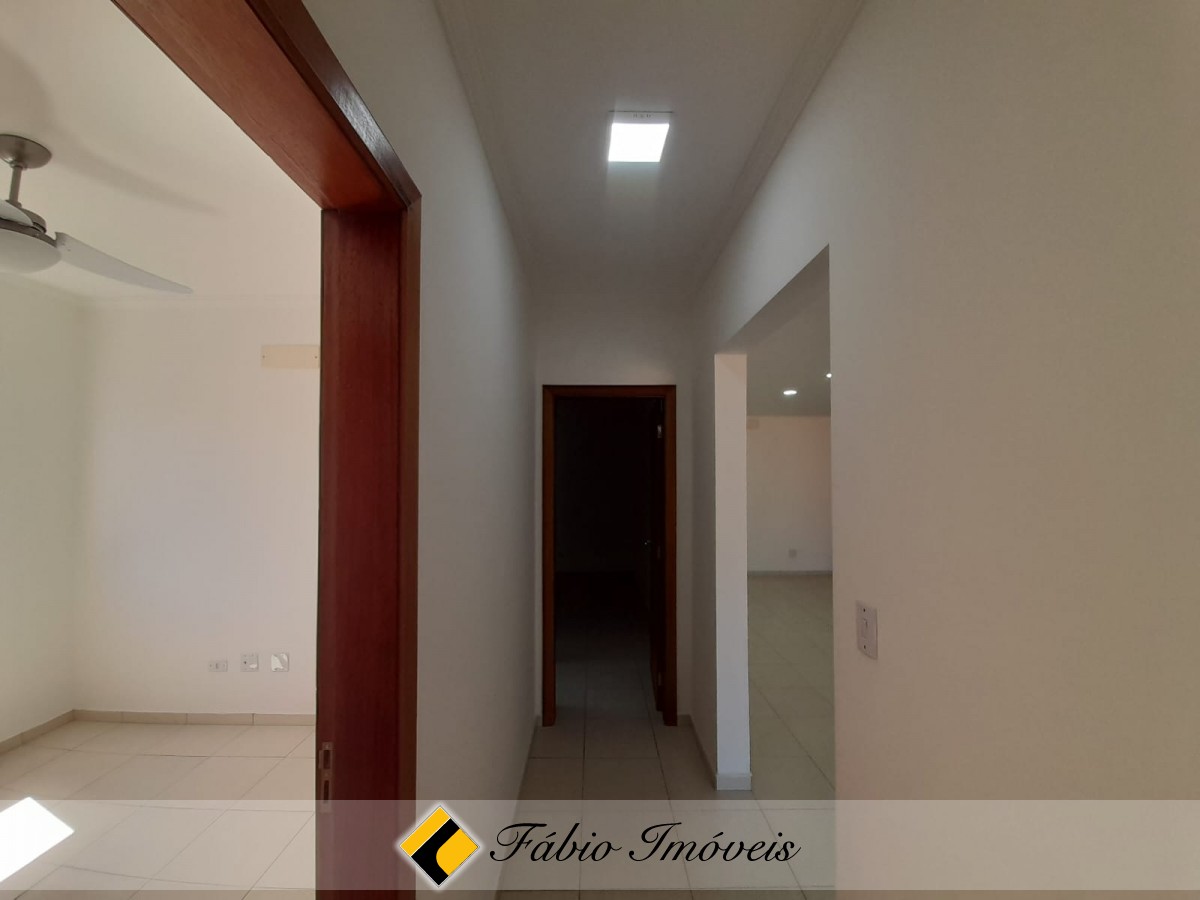 Três amplos dormitórios sendo duas suítes, um com varanda e todos com ventiladores de teto.