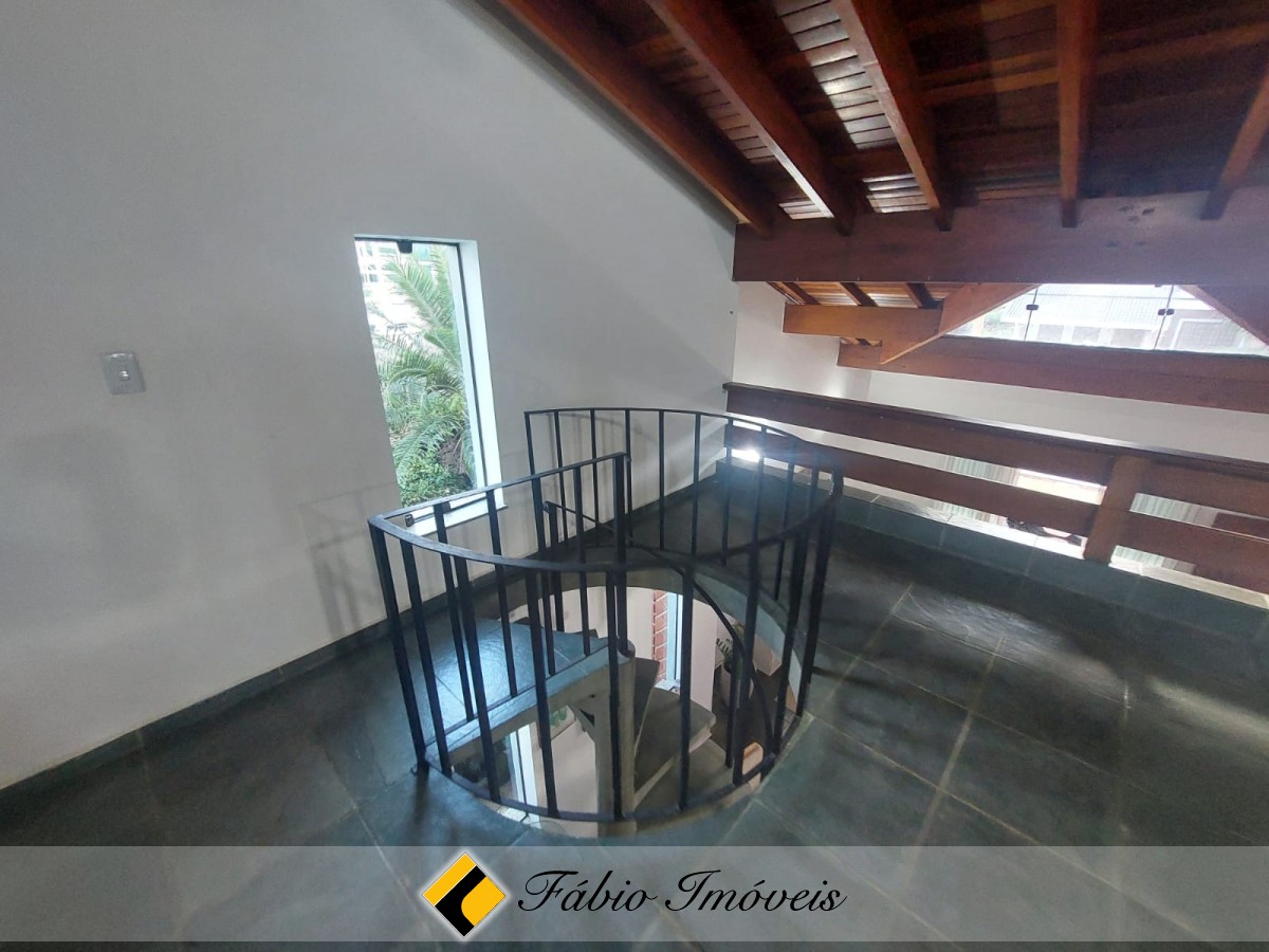 Sala ampla com pé direito alto para 2 ambientes, cozinha balcão americano integrado, armários embutidos, wc social, 3 dormitórios sendo 2 suítes, mezanino espaçoso, wc e quarto de armazenamento.