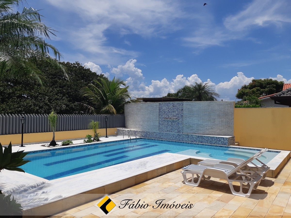 Sobrado em dois lotes, totalizando 720m² de área de terreno, com 5 suítes com ar condicionado e ventiladores, ampla sala de estar, sala rebaixada, sala de cinema com data show, cozinha com armários, sala de jantar, lavanderia, dispensa, espaço gourmet com churrasqueira. terraço muito espaçoso com vista pra área de lazer, piscina com hidro e cascata, tudo isso rodeado de um grande e lindo jardim.