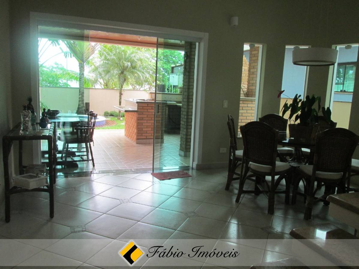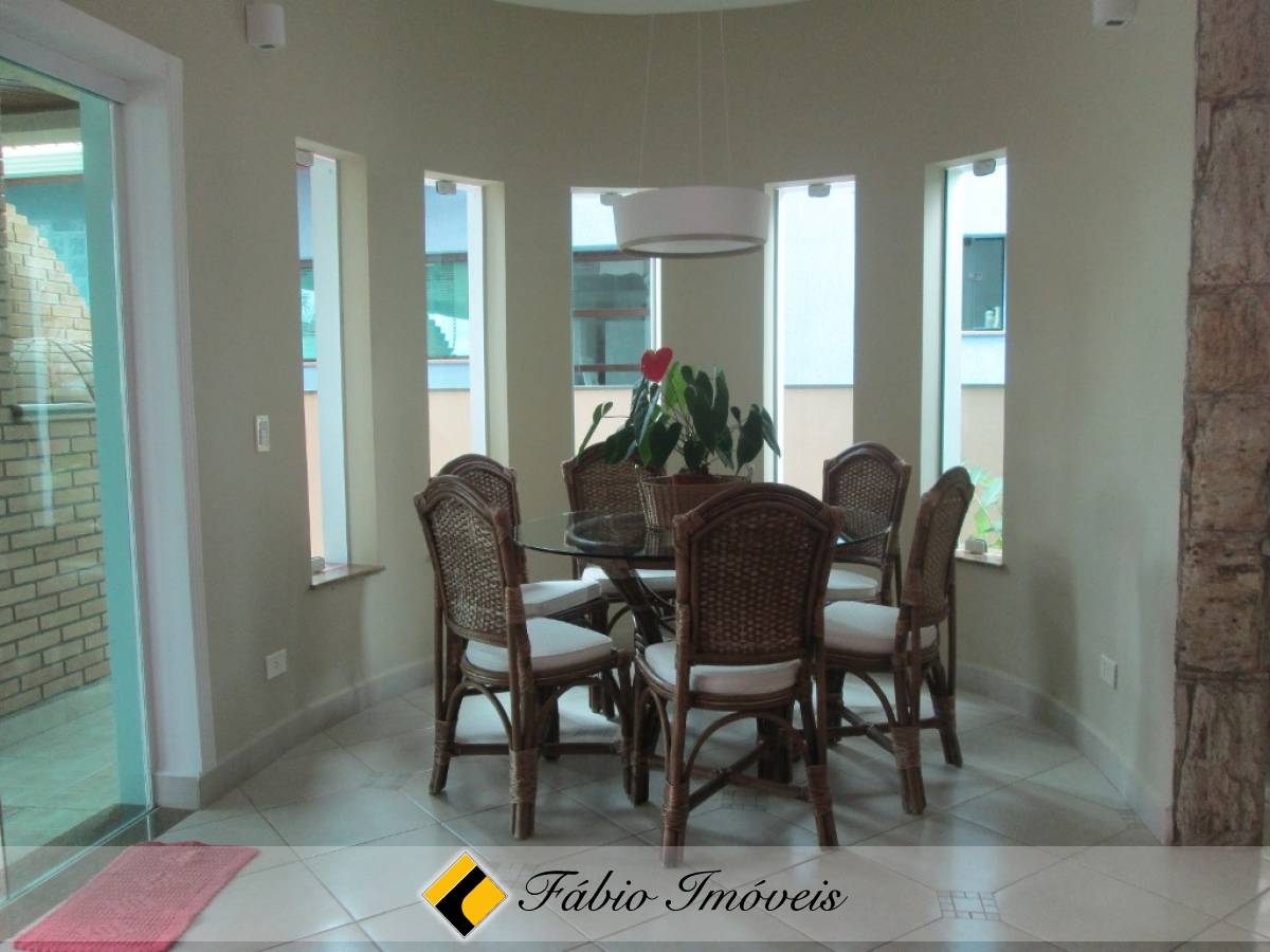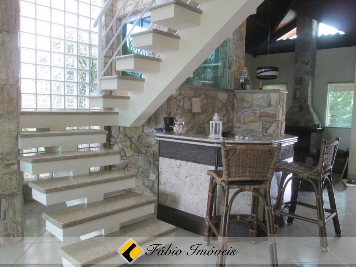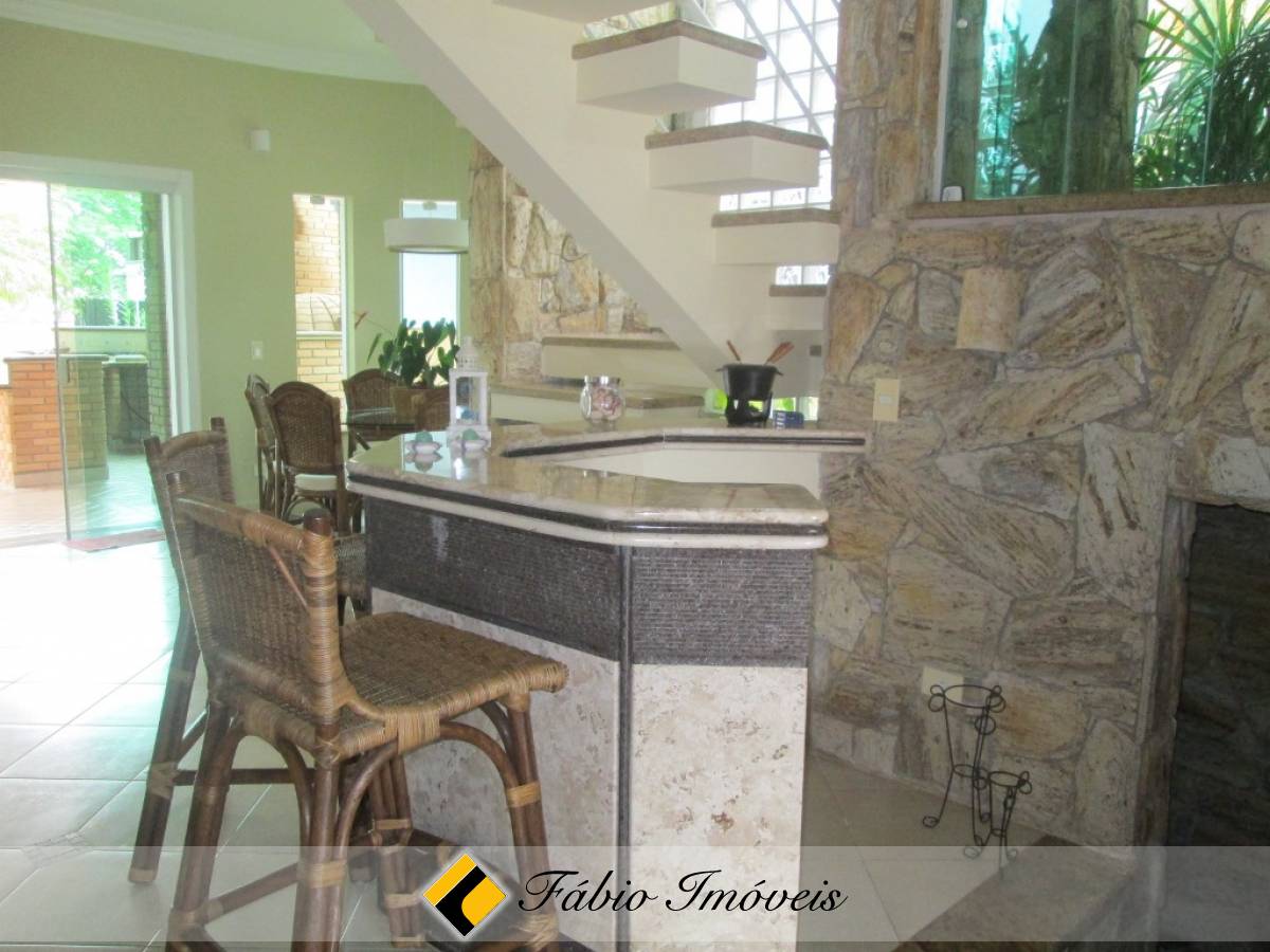 Contém 4 suítes, sendo 1 suíte master com closet e hidro, sala rebaixada com lareira, lavabo, bar, sala de jantar, cozinha, área de serviço, mezanino, salão no sótão, espaço gourmet com churrasqueira, forno e fogão à lenha, hidro externa e jardim.