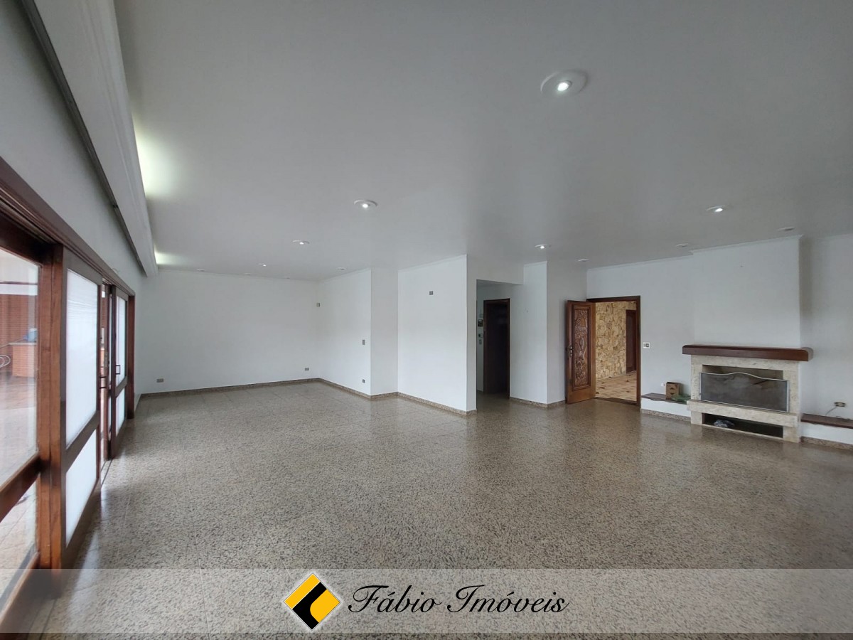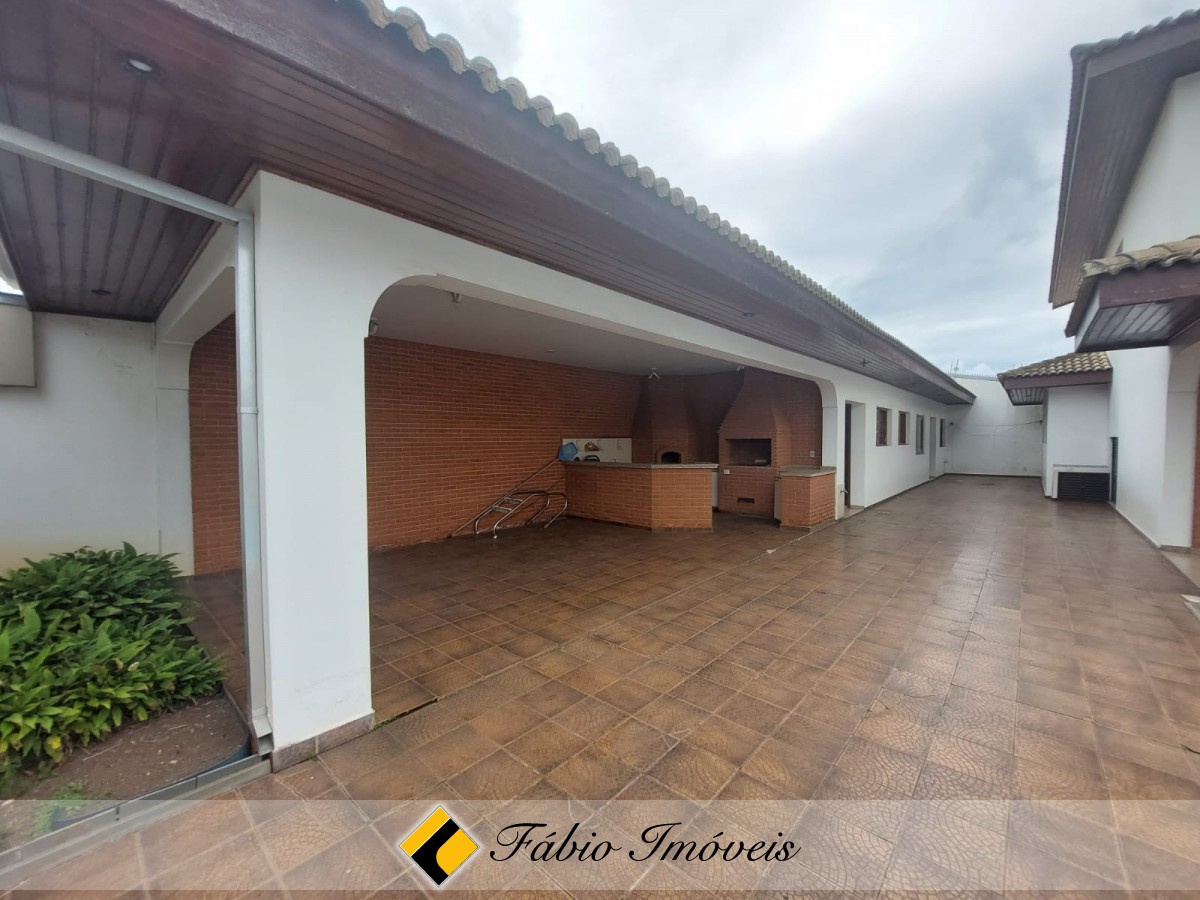 Piso inferior: Sala para até 4 ambientes, lareira, e portas balcão em toda sua extensão em acesso ao lazer, lavabo, cozinha espaçosa com armários e balcões planejados, área de serviço, despensa e wc, espaço gourmet coberto com churrasqueira, forno a lenha, balcão, pia, piscina grande com cerca de proteção, quarto e wc, quintal gde e garagem para 4 autos.