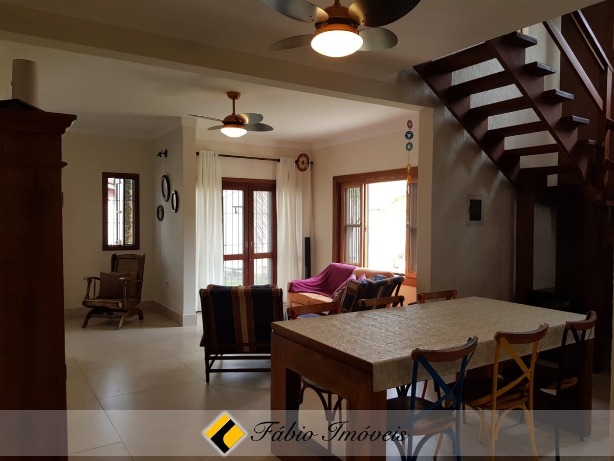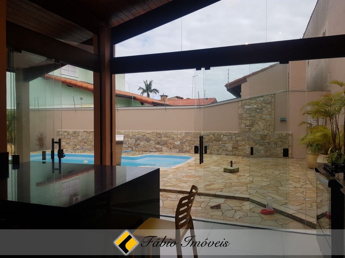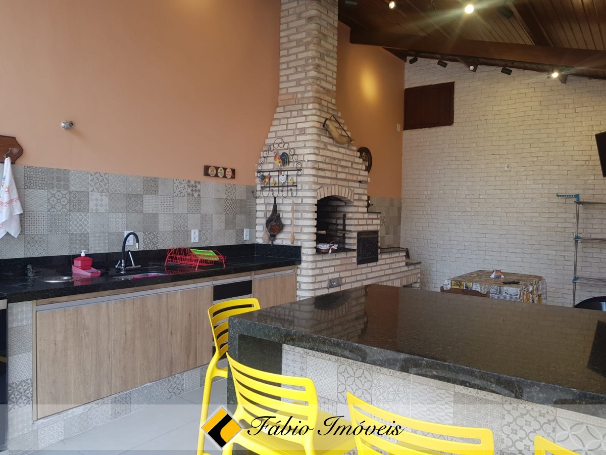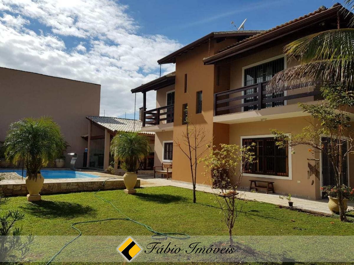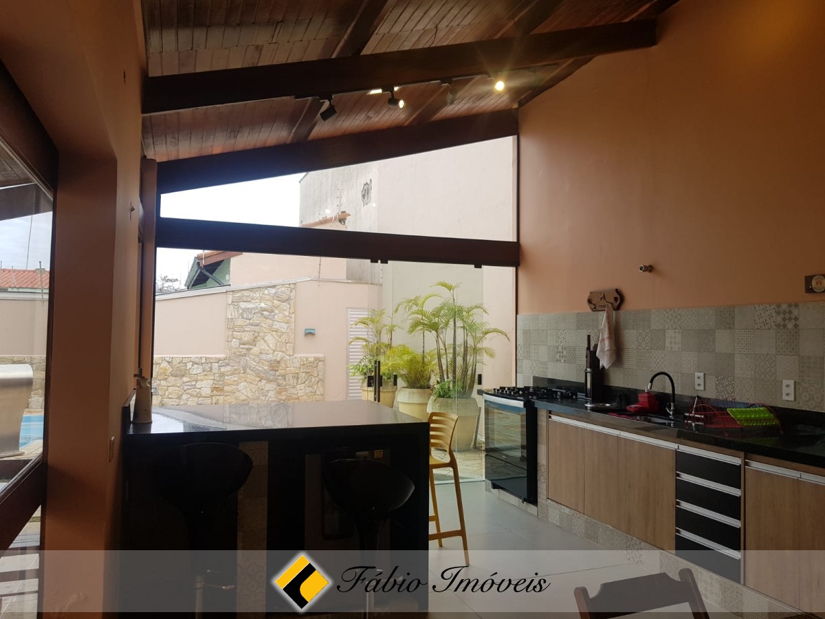 Lindo sobrado com sala ampla para dois ambientes, portas balcão em acesso a área externa, 2 wc social, cozinha espaçosa com pia em granito, armários planejados, despensa, 4 dormitórios sendo 1 suíte com closet, 2 com sacada e ar condicionado, área de serviço coberta, espaço gourmet com churrasqueira, fogão a lenha, pia, bancada em granito, cooktop, armários planejados, portas pivotantes, quarto, wc externo, quintal, jardim com paisagismo, piscina com cascata, canil, garagem para 4 autos, sistema de alarme monitorado, cerca elétrica e portão automático.