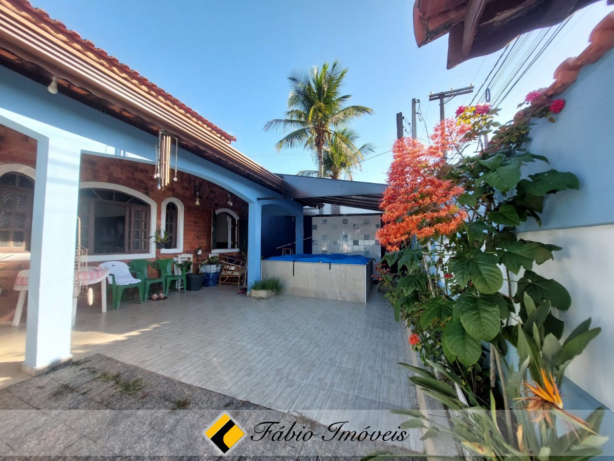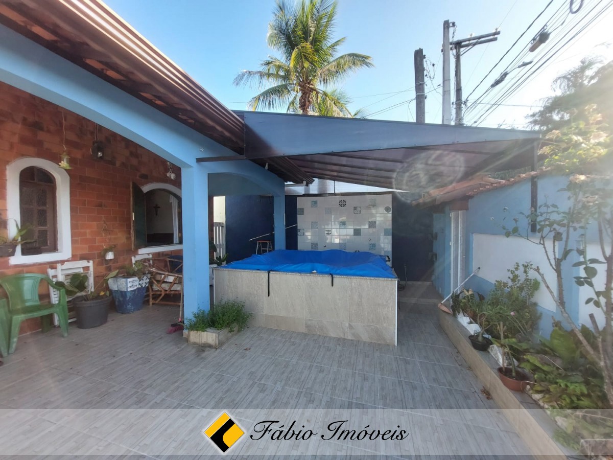Casa com sala ampla e pé direito com mezanino, sendo utilizado como dormitório, wc social, 2 dormitórios sendo 1 suíte, cozinha espaçosa com armários, lavanderia, área de churrasqueira ampla, terreno extenso com plantações e árvores frutíferas, corredores de ventilação, jacuzzi coberta até 7 pessoas, perfeita para relaxar e aproveitar momentos inesquecíveis com sua família e garagem para até 3 autos.