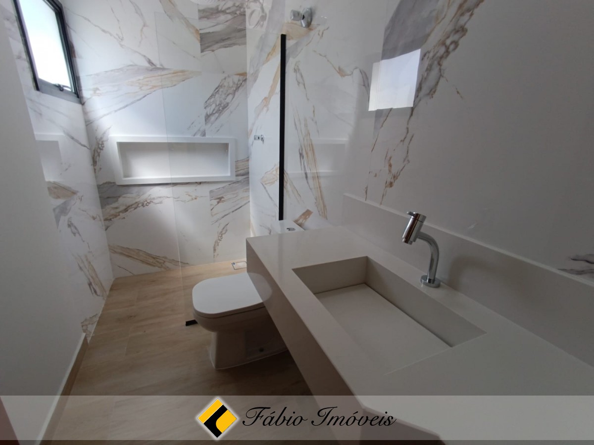 São 3 suítes, sendo 1 com closet, sala ampla para 02 ambientes, cozinha americana, área de serviço, espaço gourmet com churrasqueira, piscina com cascata, jardim e quintal espaçoso e garagem para 04 autos.