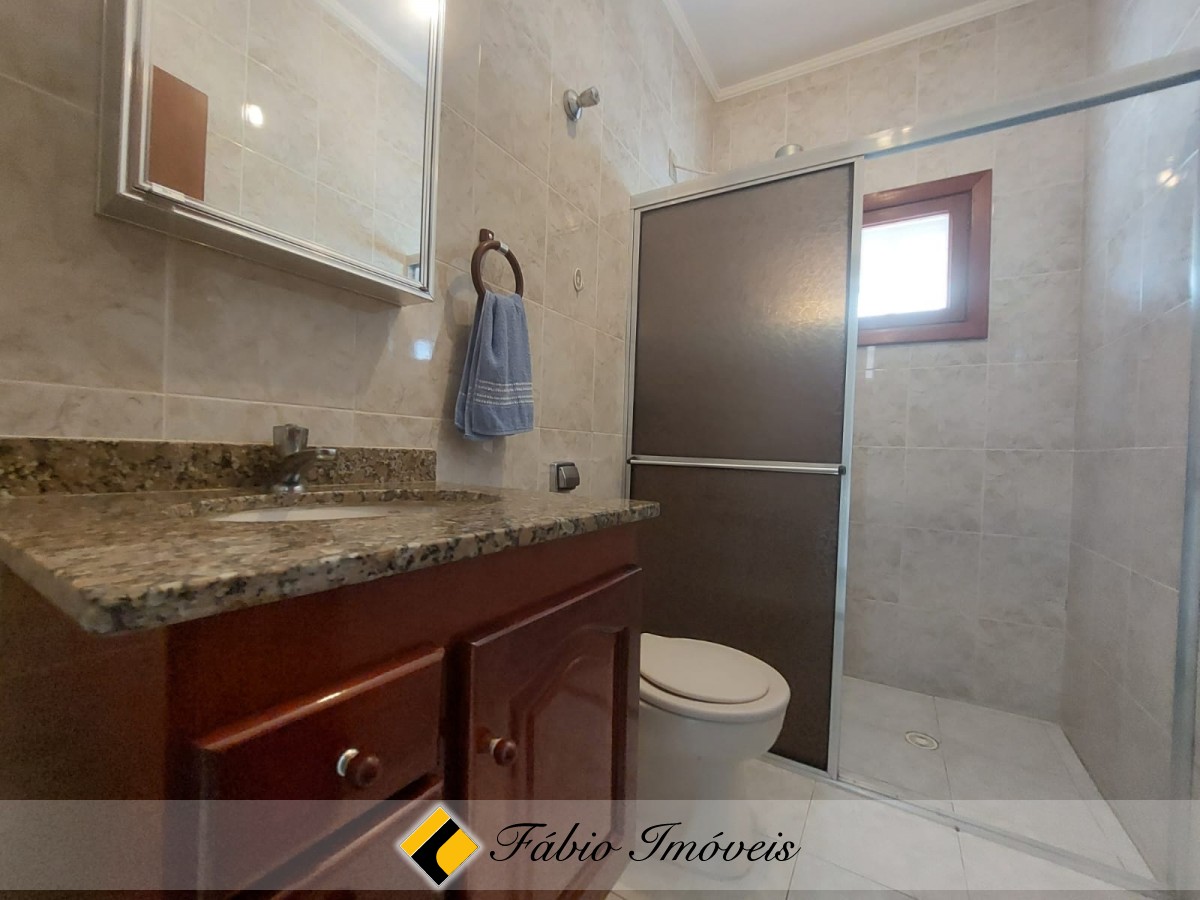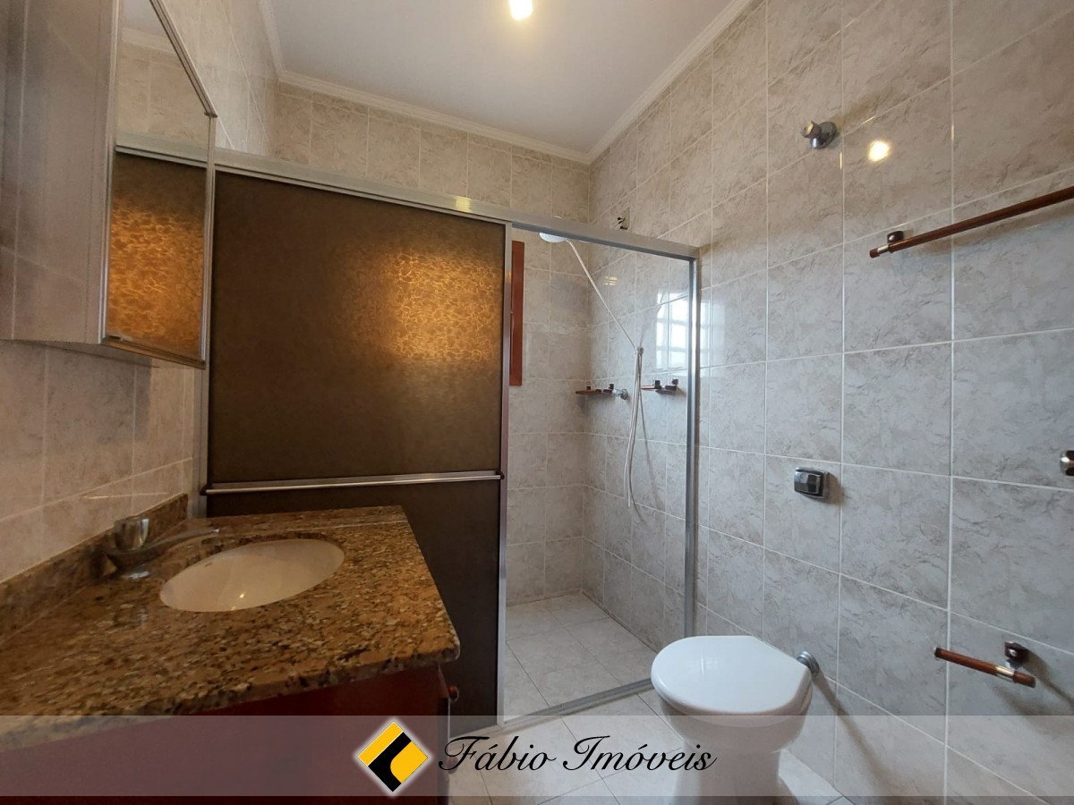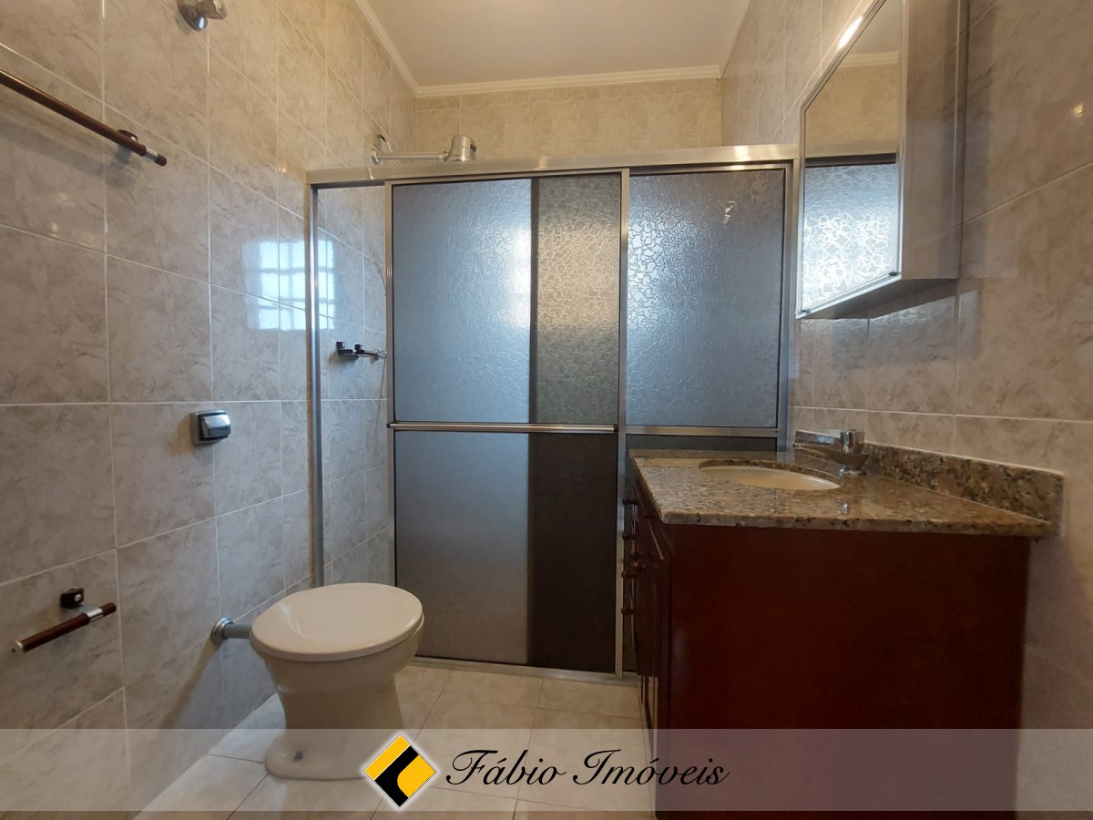 Sobrado em 3 lotes, com sala 3 ambientes, com porta balcão em acesso a área de lazer com fechamento em vidro na varanda, wc social, cozinha ampla com armários, 4 dormitórios, sendo 3 espaçosas suítes, bem arejadas e iluminadas, 1 com bnheira, (1 dormitório no piso inferior) e área de serviço. Mezanino, grande podendo ser utilizado como dois confortáveis ambientes.