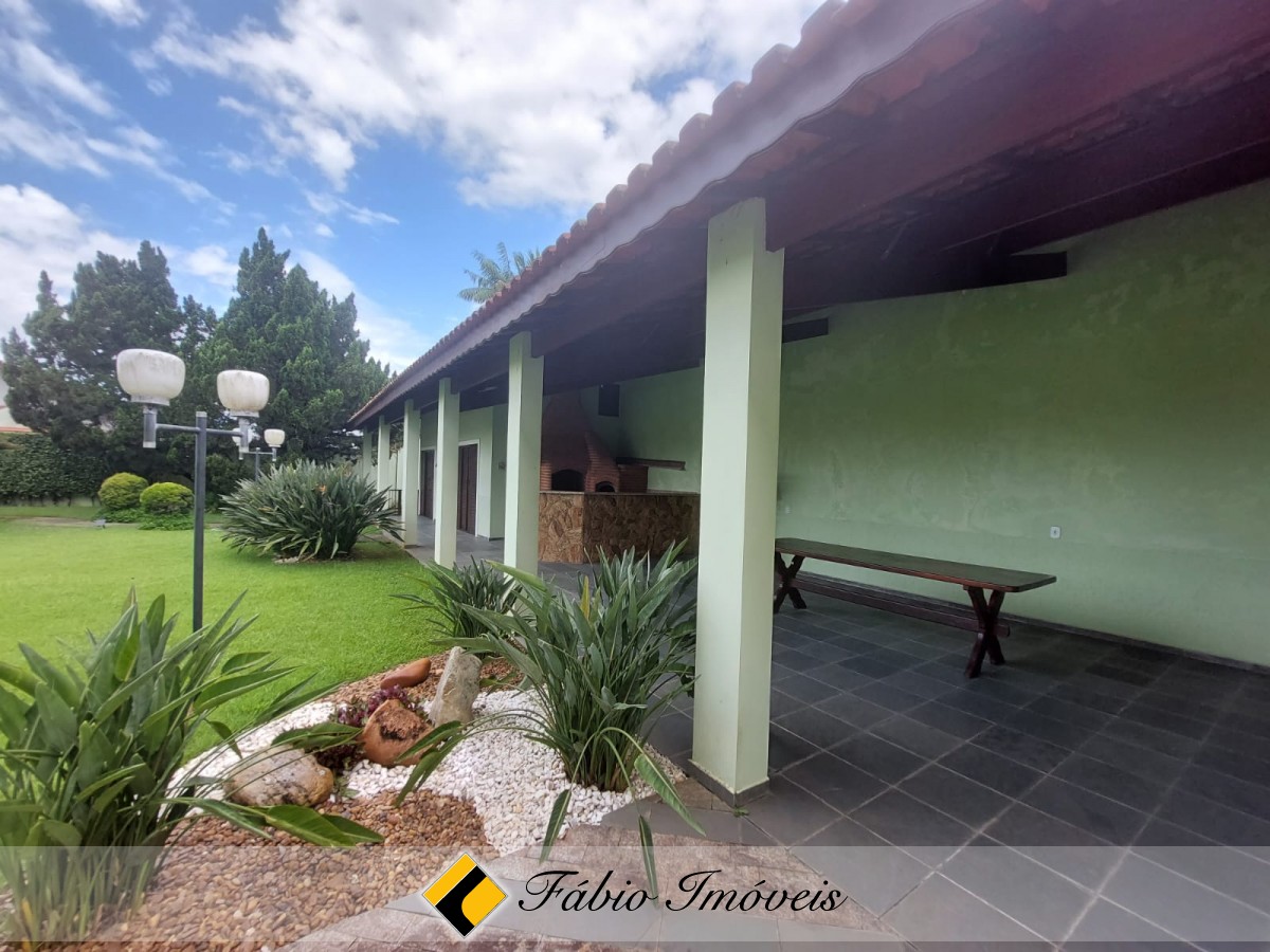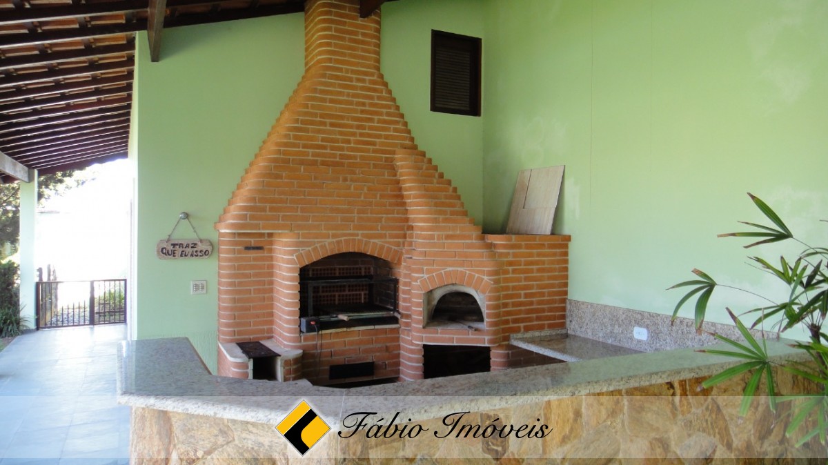 Maravilhoso lazer com jardim bem decorado, área gramada, piscina grande, ducha, espaço gourmet coberto com churrasqueira, forno e fogão a lenha, 1 suíte e mais 1 dormitório.