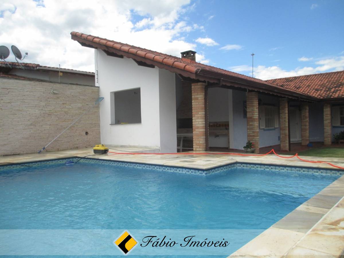 Sala ampla dois ambientes, varanda em toda sua extensão, cozinha, 5 suítes, sendo que no corpo principal são 2 e 3 externas, lavanderia, área de churrasqueira, piscina suspensa, gramado,garagem para 4 autos, cerca elétrica e alarme monitorado.