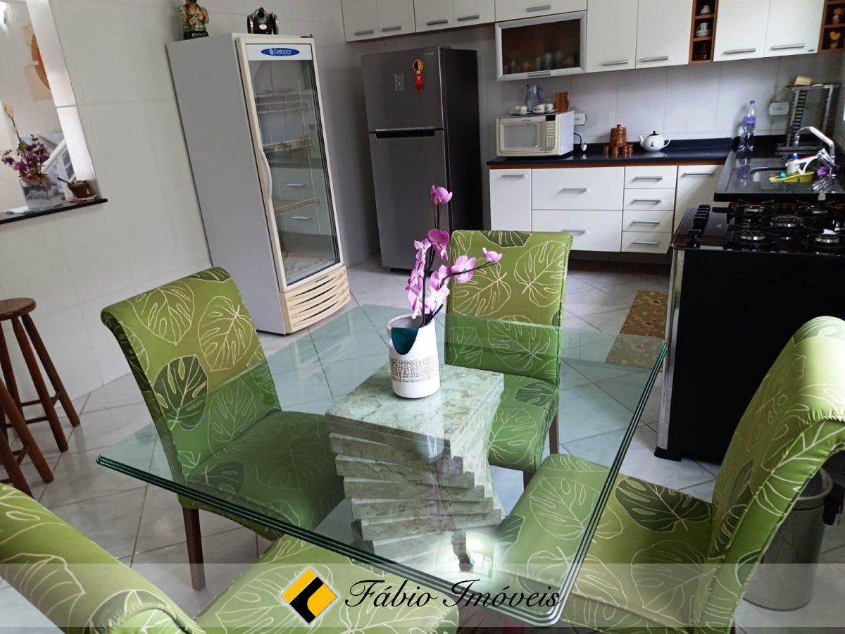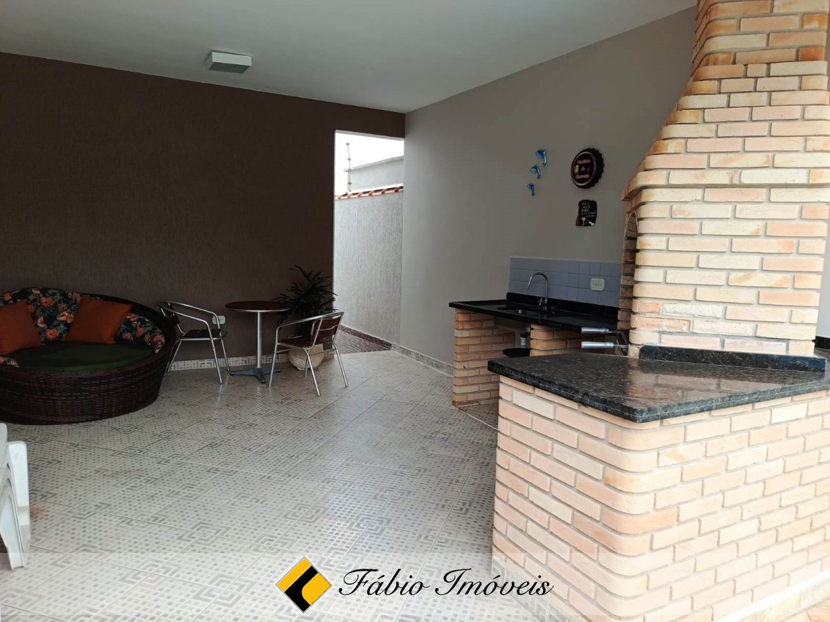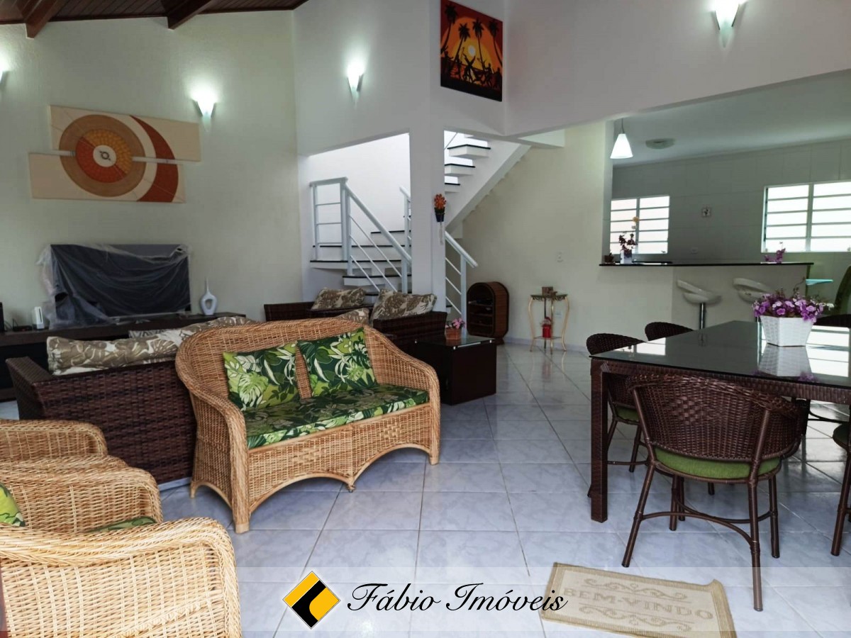 Sobrado a apenas 300m da praia, com 4 suítes, sala para dois ambientes, wc social, cozinha americana com armários, área de serviço, espaço gourmet com churrasqueira e pia, piscina com cascata, jardim e garagem para 02 autos. Imóvel com documentação OK para financiamento bancário.