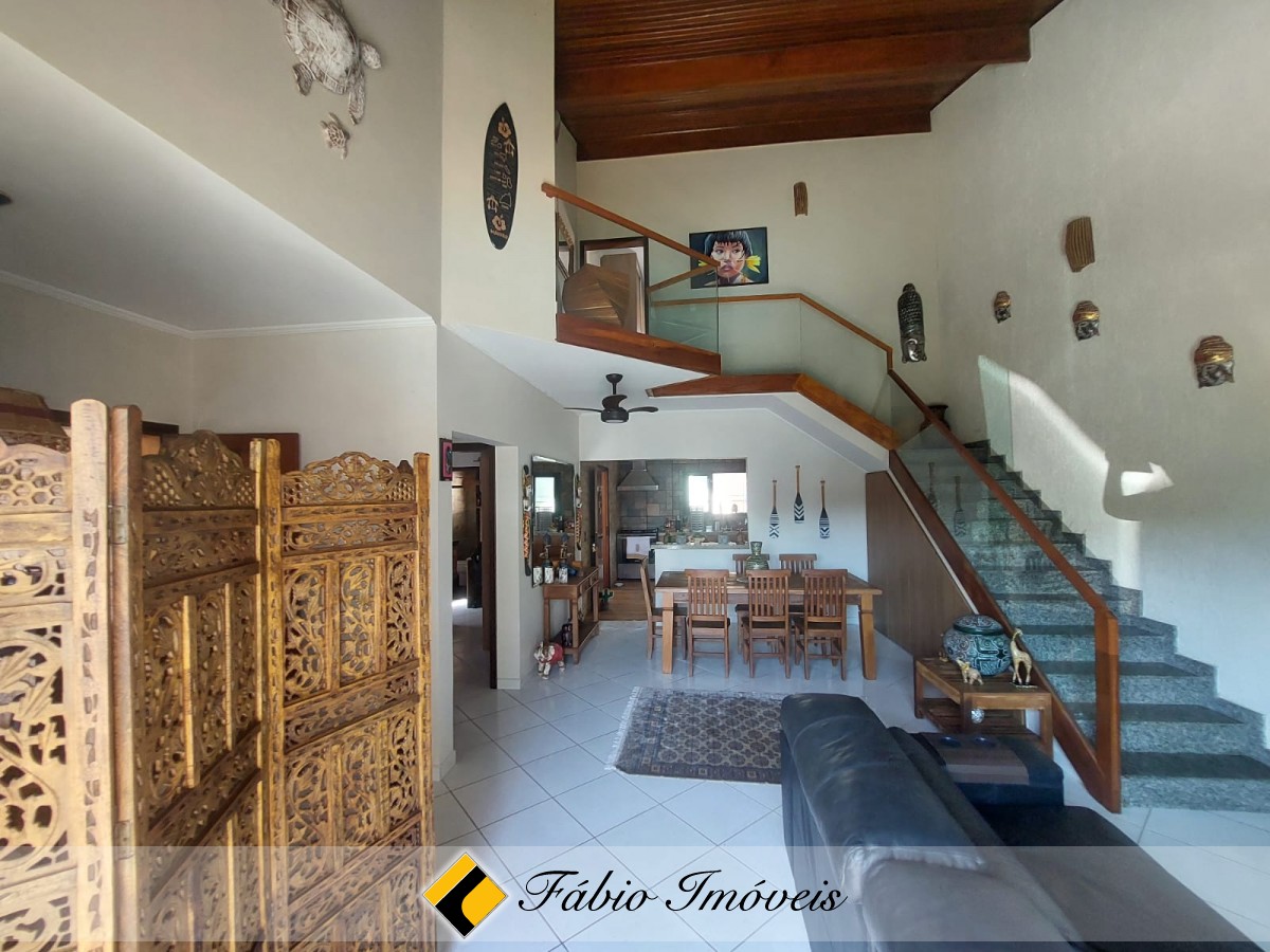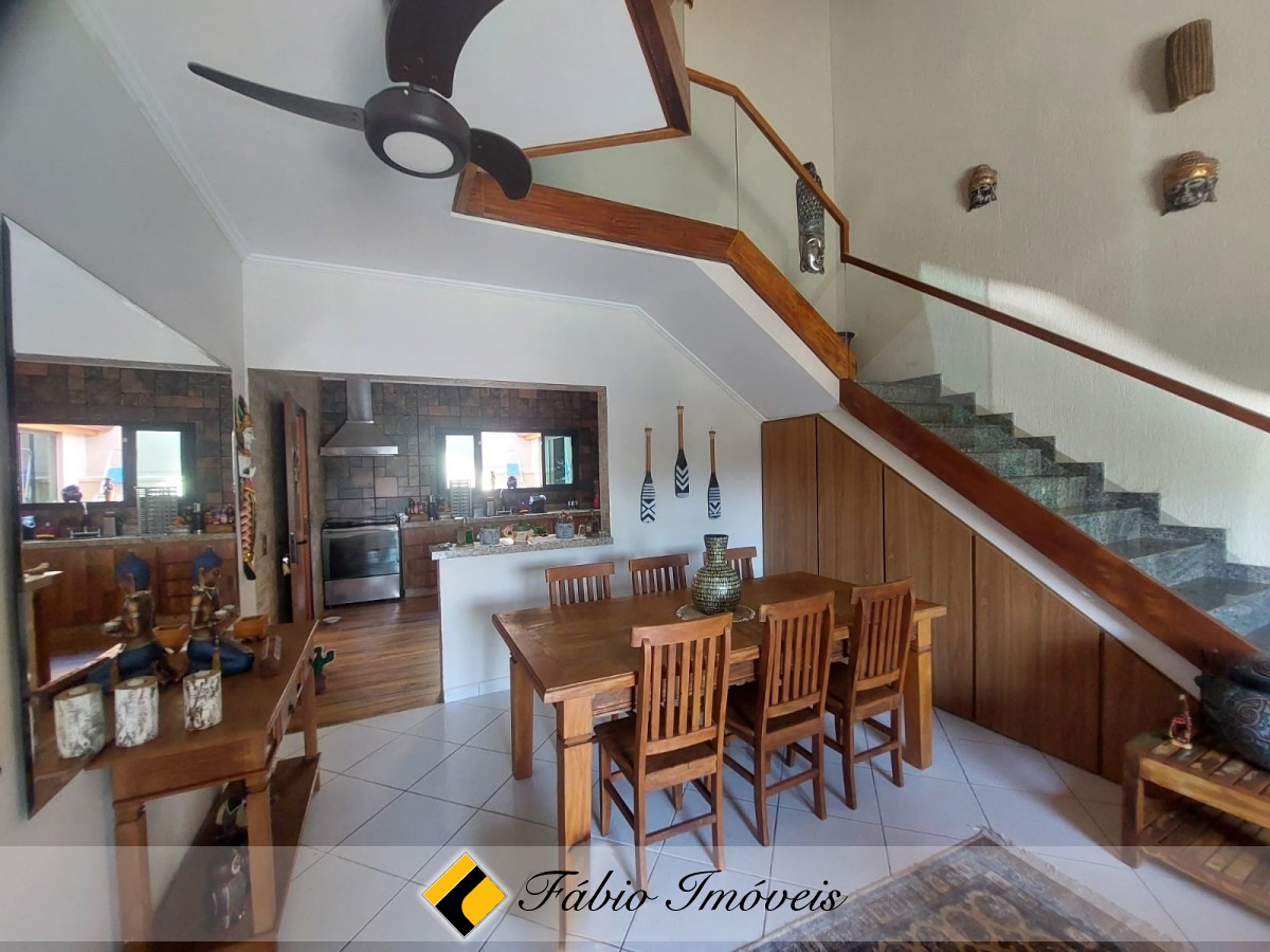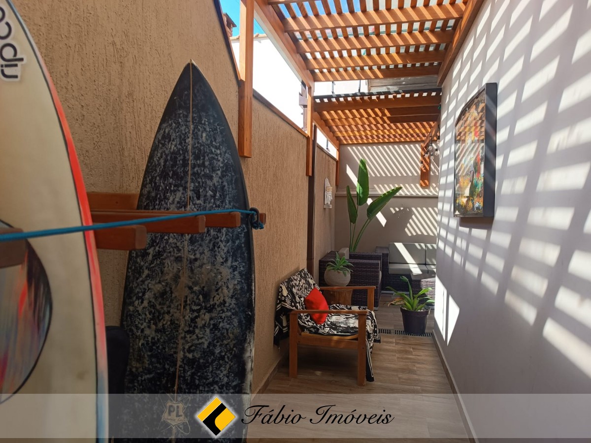 Lindo sobrado próximo ao mar com sala ampla para três ambientes compondo, sala de estar, sala de jantar, sala íntima, pé direito alto, trazendo ventilação e iluminação natural, lavabo, cozinha balcão americano com armários planejados em sua extensão, 1 suíte no piso térreo, duas amplas suítes no piso superior, sendo 1 com varanda e vista para o mar, além de charmoso mezanino na parte frontal da mesma.