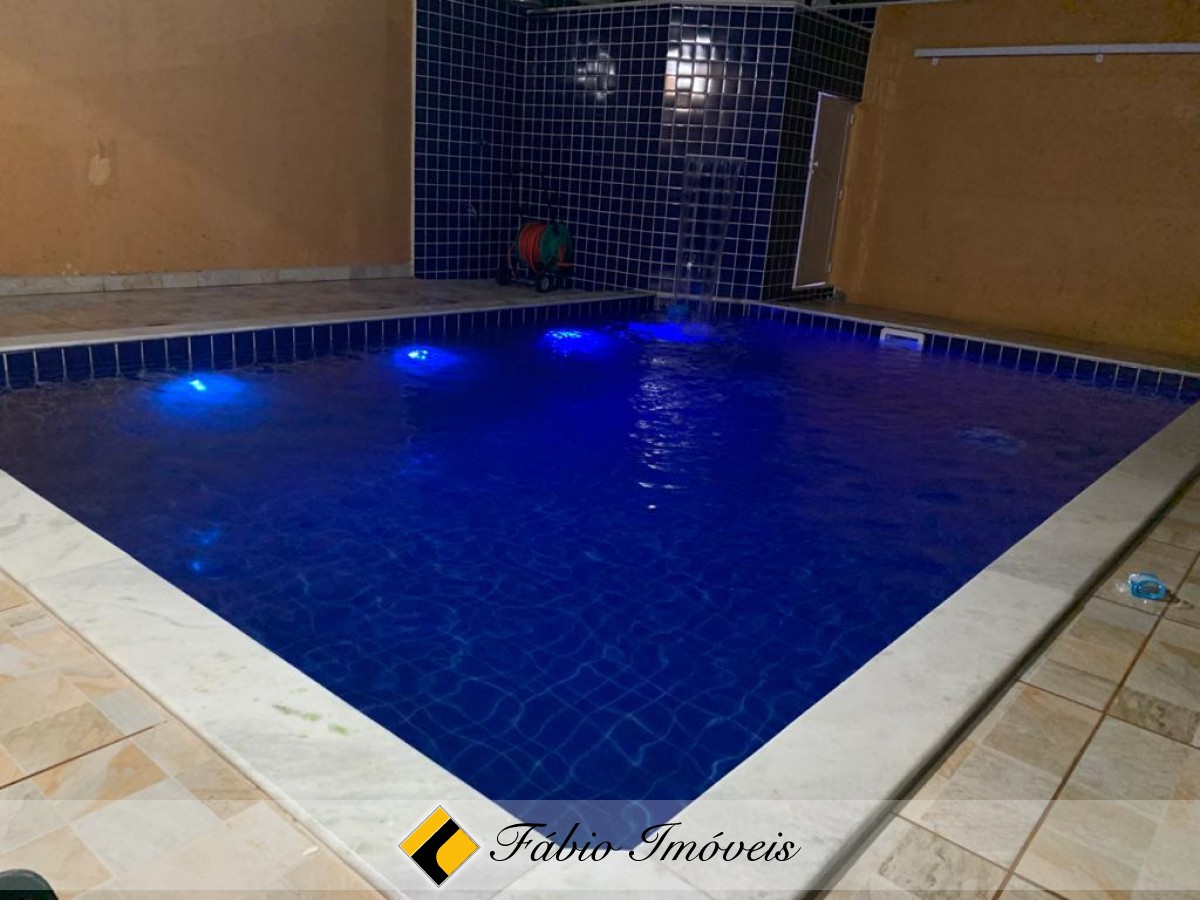 Sala ampla com cozinha balcão americano integrado, 2 dormitórios sendo 1 suíte, ambos com ar condicionado e ventiladores de teto, área de serviço, edícula com quarto e wc, espaço gourmet com churrasqueira, pia e 1 boca de fogão, piscina, quintal espaçoso, portão automático, 4 câmeras de monitoramento e garagem para 2 autos.