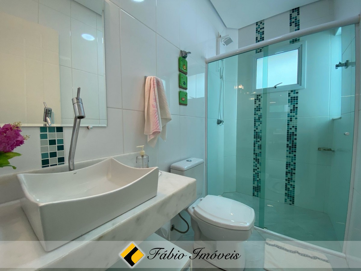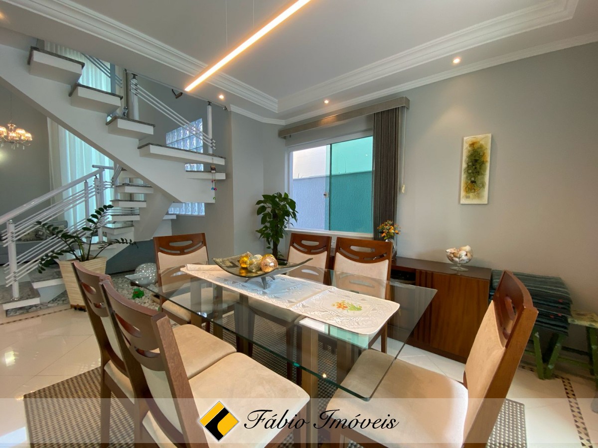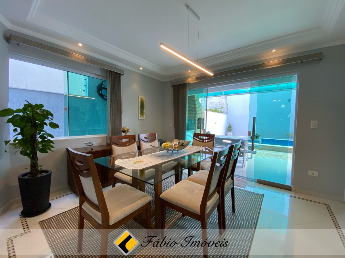 4 dormitórios, sendo 3 suites, todas com ar condicionado, sendo 1 master com closet e hidro, wc social, sala intima, sala pra 2 ambientes com janela piso-teto, cozinha americana com armários planejados, coifa, área de serviço, espaço goumet, piscina com cascata, wc externo, duas vagas de garagem, cerca elétrica e alarme monitorado.