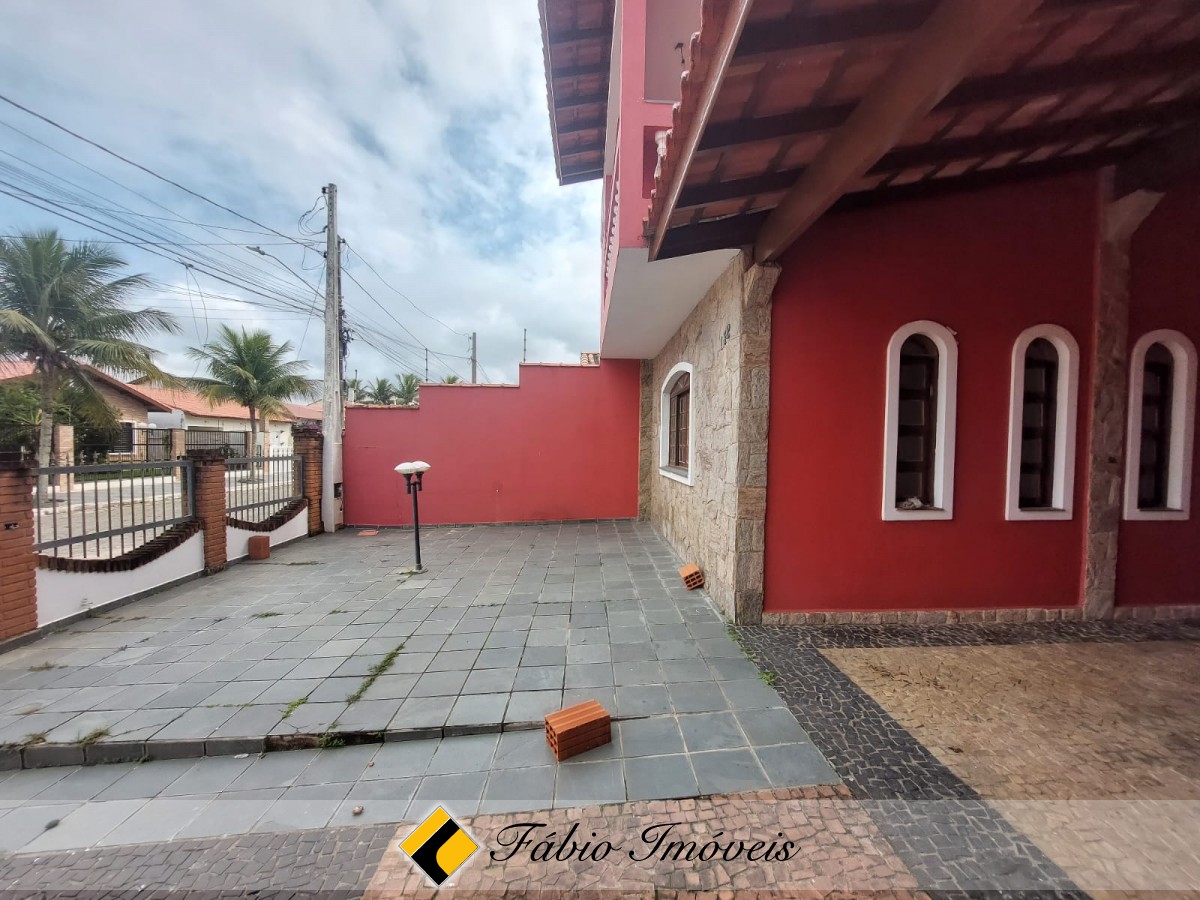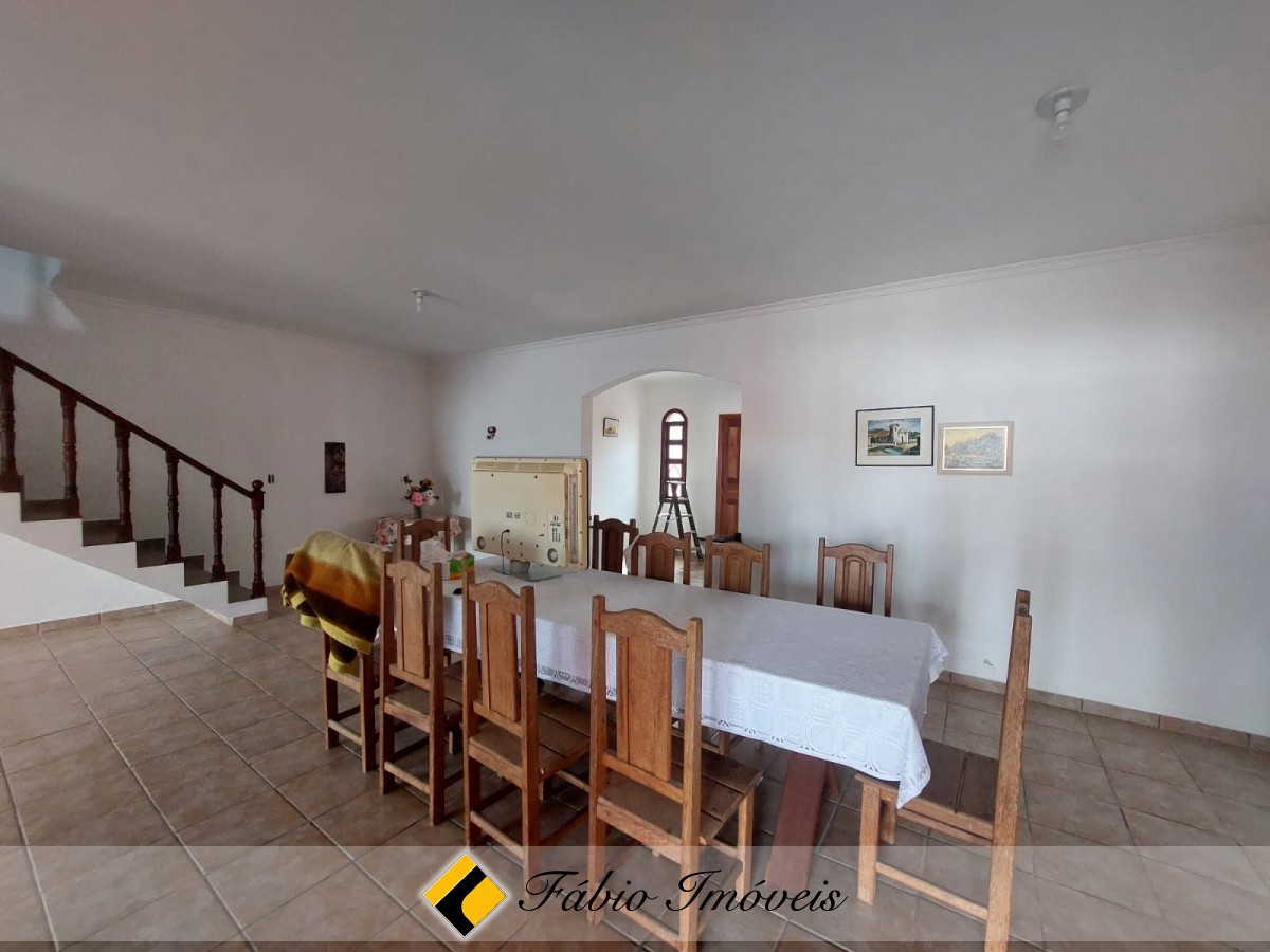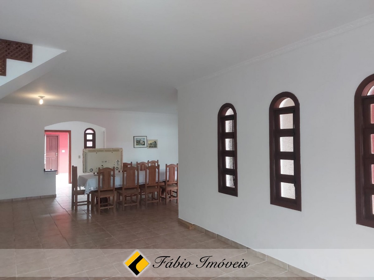 Sobrado a 100 metros da praia, com sala ampla para 2 ambientes, sala de jantar, wc social, cozinha balcão americano, 3 dormitórios sendo 1 suíte com varanda, 1 wc, no piso superior, quarto e wc externo, área de churrasqueira, espaço para piscina, quintal, corredores de ventilação e garagem para 3 autos.