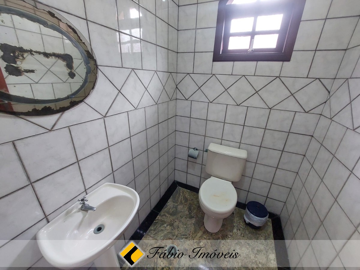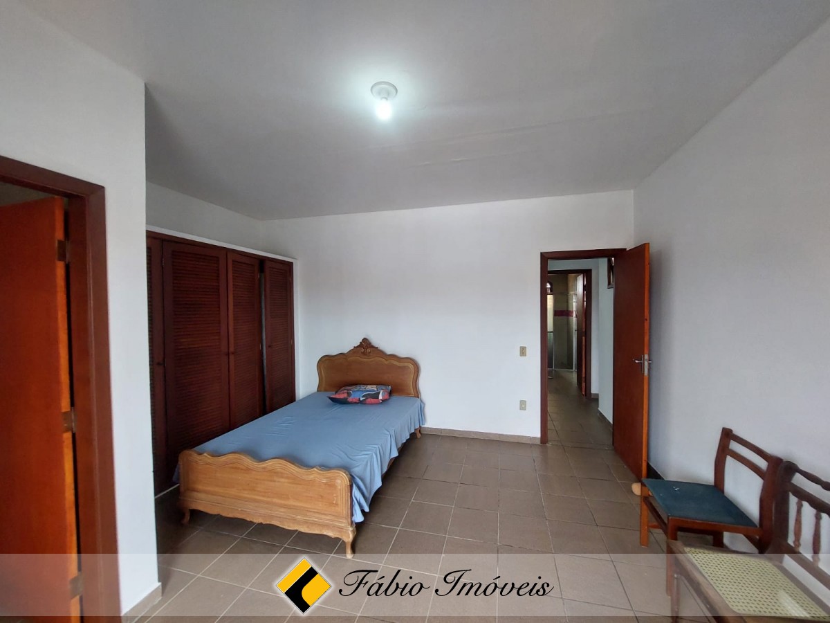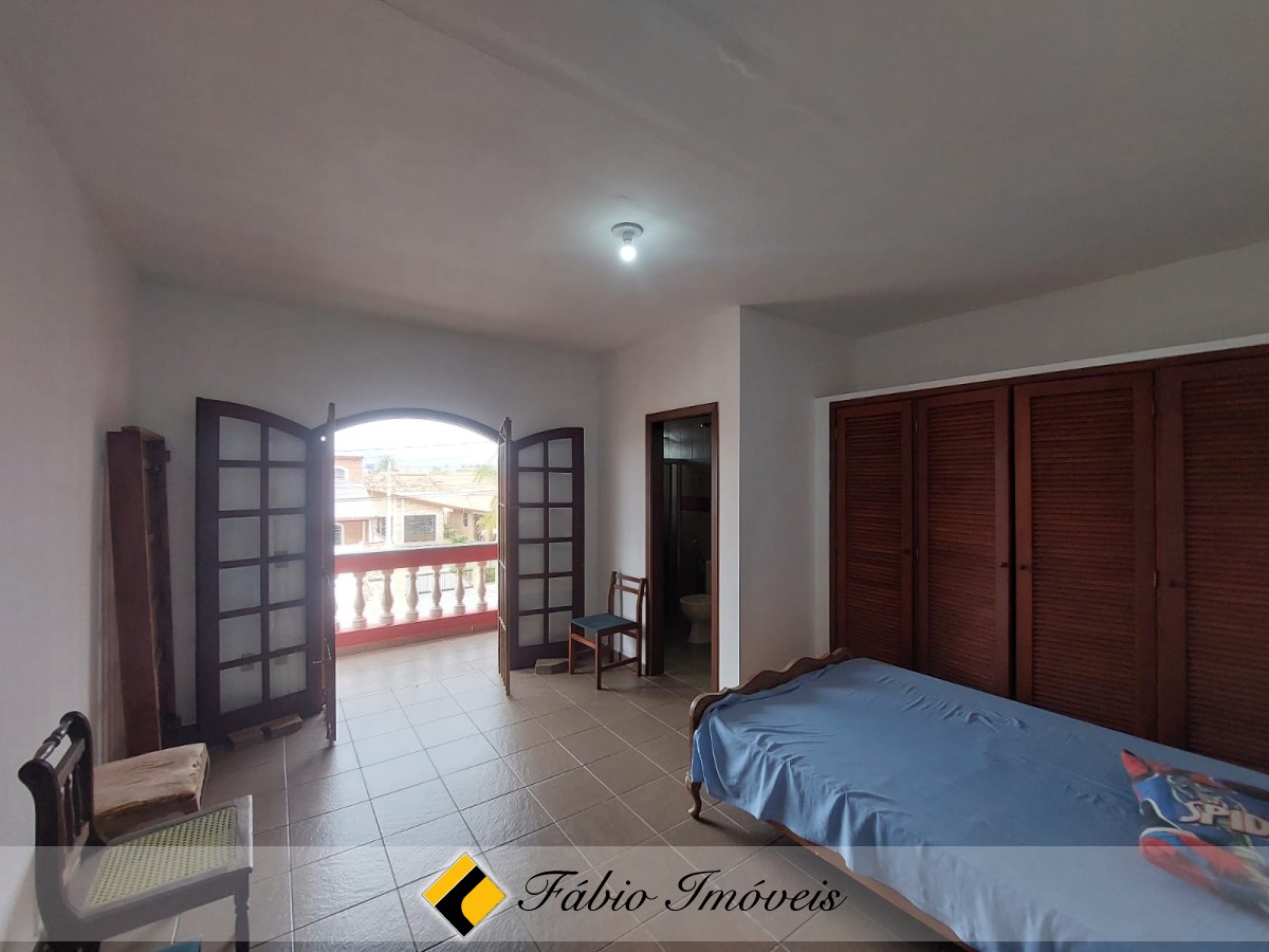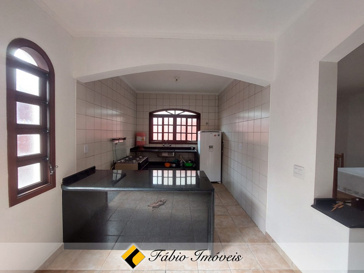Sobrado a 100 metros da praia, com sala ampla para 2 ambientes, sala de jantar, wc social, cozinha balcão americano, 3 dormitórios sendo 1 suíte com varanda, 1 wc, no piso superior, quarto e wc externo, área de churrasqueira, espaço para piscina, quintal, corredores de ventilação e garagem para 3 autos.