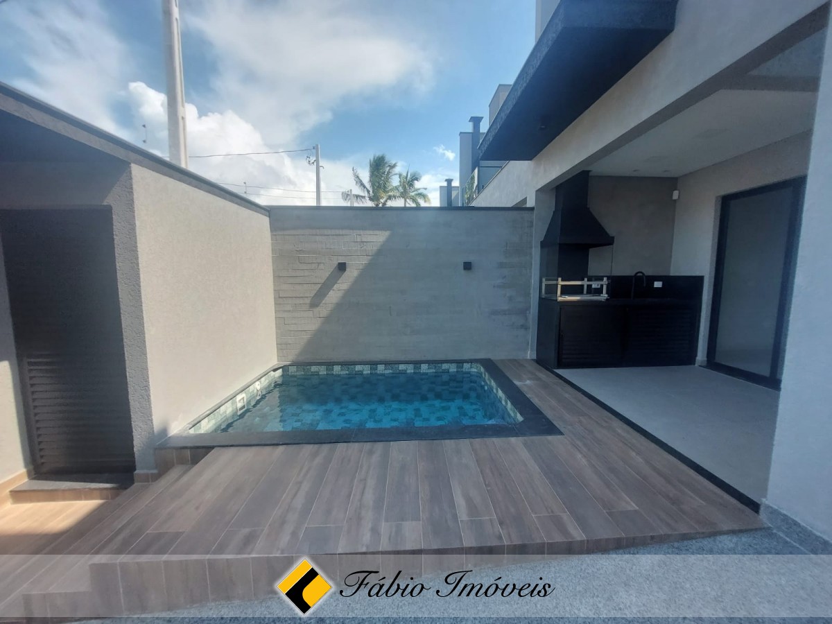 Ainda no piso térreo, espaço gourmet com churrasqueira, pia, piscina com cascata, wc externo, portão automático, quintal confortável, garagem para 2 autos, alarme monitorado e cerca elétrica.