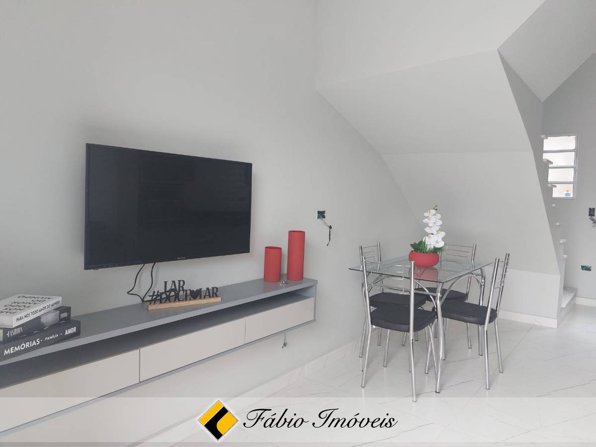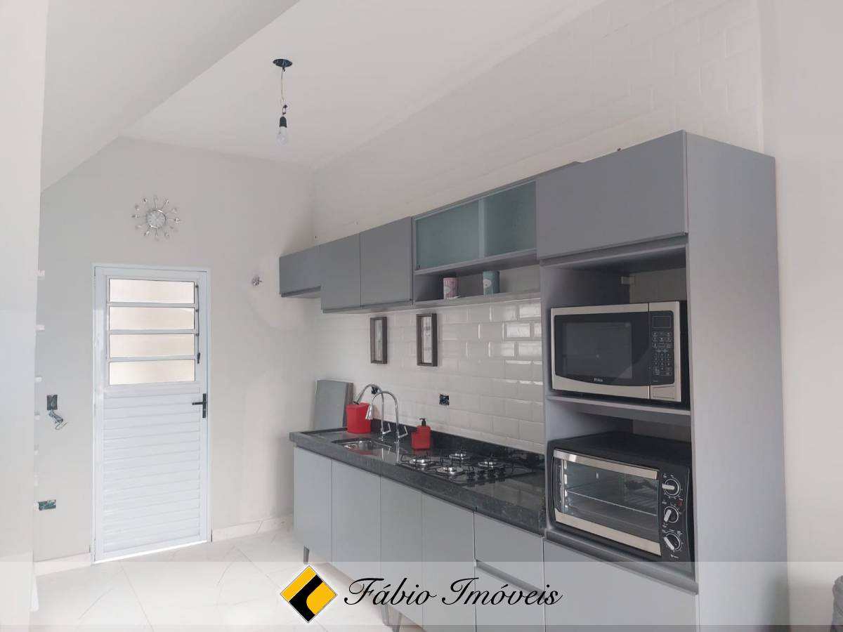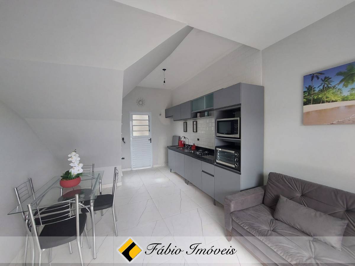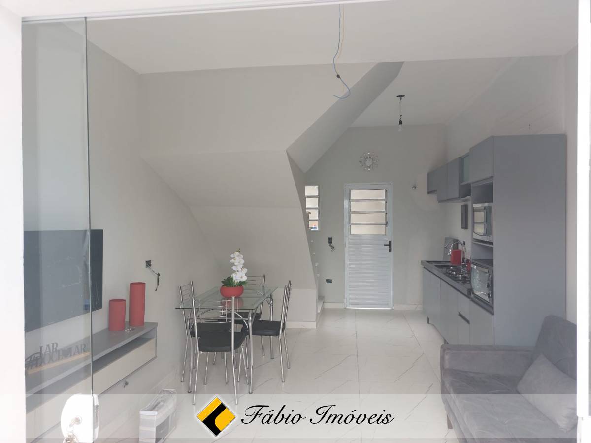 Lindo sobrado bem distribuído com sala ampla, cozinha integrada, wc social, 2 dormitórios e garagem privativa para um auto.