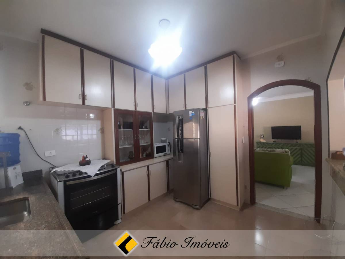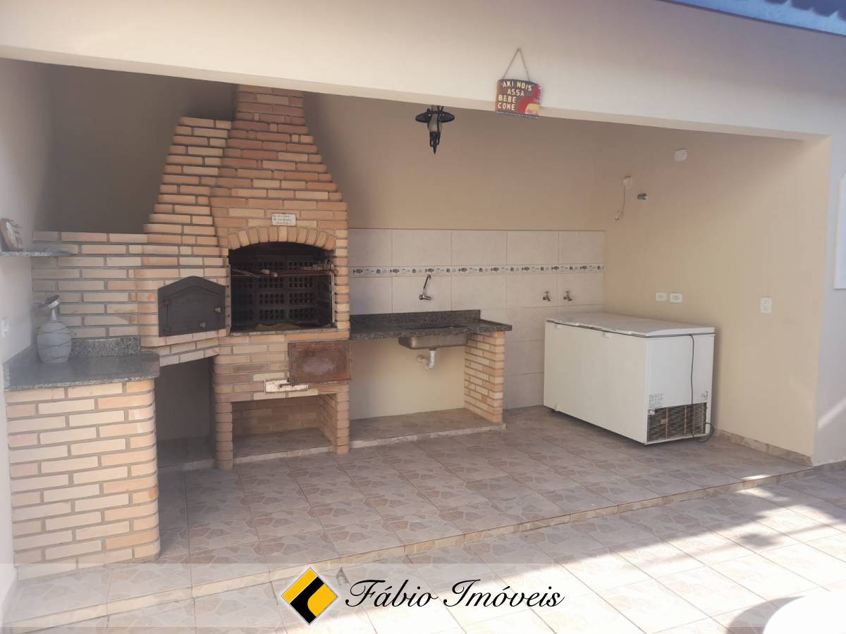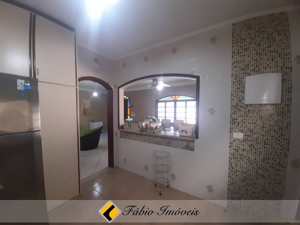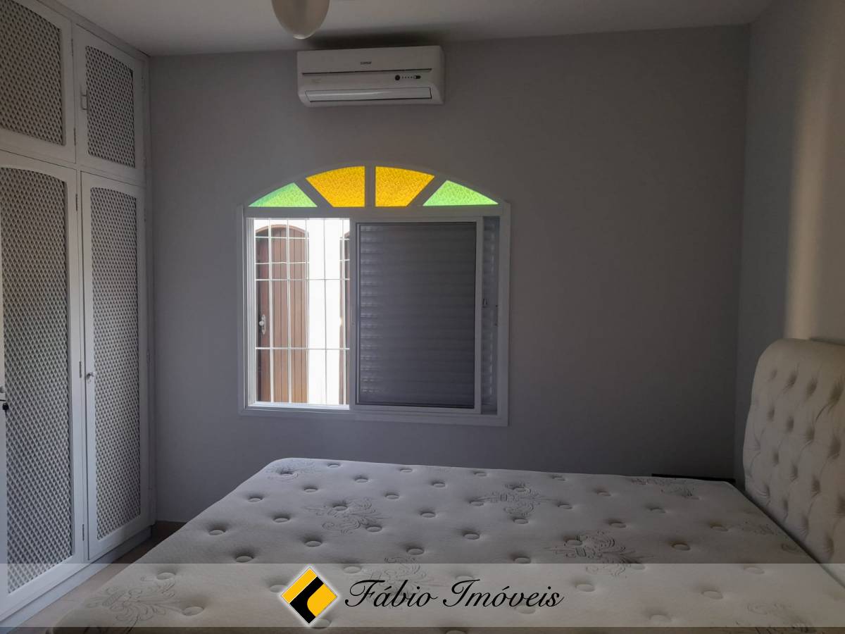 Casa térrea com 3 dormitórios, sendo uma suíte, todos com armários embutidos, ventilador de teto e ar condicionado, sala ampla 2 ambientes, cozinha americana com armários em toda sua extensão, wc social, edícula com quarto e wc, espaço gourmet com churrasqueira e forno, varanda, piscina com cascata e garagem para 2 autos.