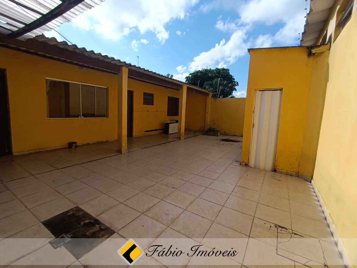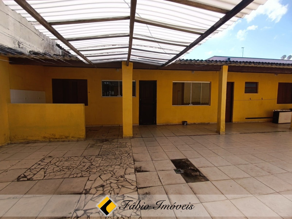 Salão principal com 69m, 2 banheiros e varanda coberta.
