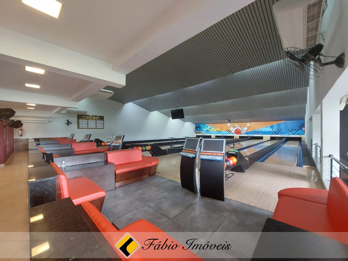 No piso superior contamos ainda com sala de reunião, despensa grande com câmara de congelamento de alimentos, wc com vestiário feminino, wc com vestiário masculino, almoxarifado, 2 escritórios e corredor amplo com vista total para a pista de boliche.